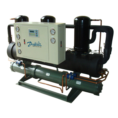 冷水機主要是為了給產品或設備提供冷凍水以達到制冷的目的。這兩種冷水機都需要配用冷卻水塔進行散熱,但因為水冷箱式冷水機內置有水箱及水泵,因此安裝的時候,用戶只需要將冷水機組與冷卻水塔連接起來,接通自來水即可投入使用。而開放式冷水機除了配用冷卻水塔,還需要增加水泵及雙層不銹鋼保溫水箱方能使用。