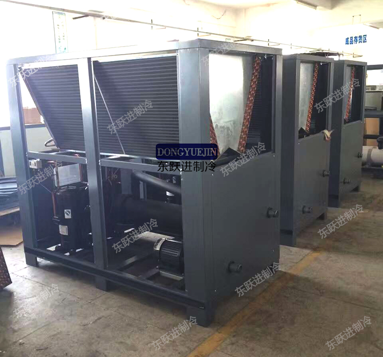 東躍進制冷經過十幾年的發展,雖然風冷式箱式冷水機作為較簡單的機型,但是使用的客戶還是非常多的,我們也對其進行了多次升級,機組在性能上更加的穩定,故障率也非常低,多壓縮機制冷系統設計使使用比較節能。雖然每個廠家的風冷箱式冷水機外觀不一樣,但實際上配置都相差無幾,都是由渦旋式壓縮機,殼管式或水箱盤管式蒸發器,翅片式冷凝器,水泵,風機,膨脹閥,過濾器,高低壓壓力表,電控系統,機箱等組成。